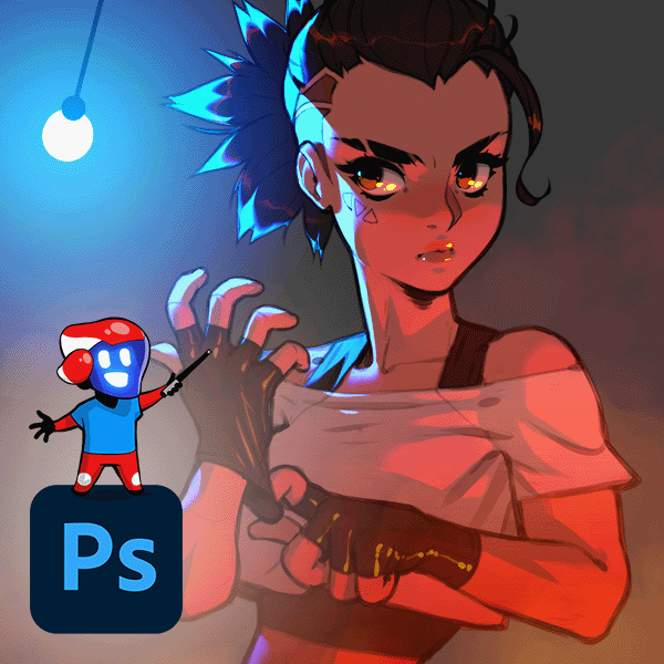 See how this is animated in Photoshop with all the layers, lines, colours, shading, rim light and highlights.